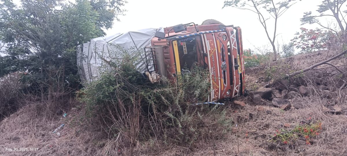 बुका खेड़ी डैम के पास हुई टक्कर, आयशर वाहन पलटा कोई जनहानि नहीं