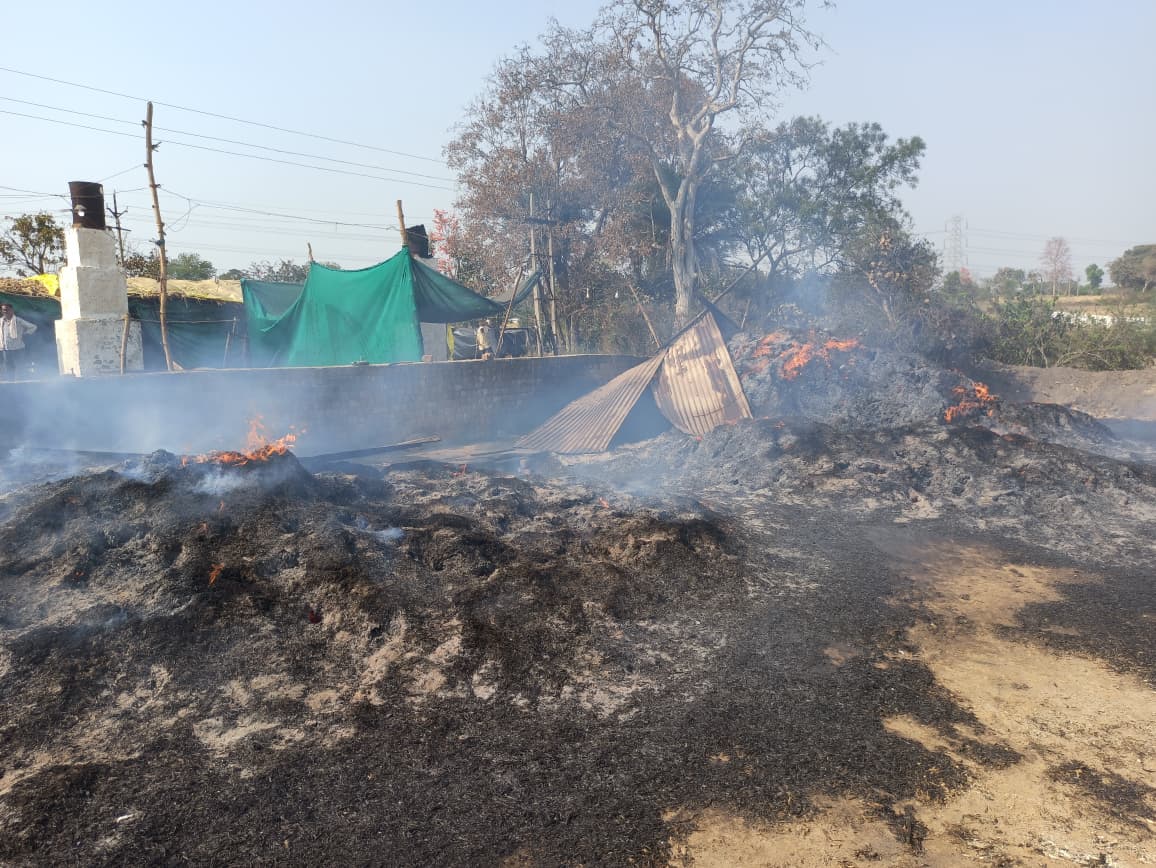 गुड़ का घाने सहित अन्य स्थान पर लगी आग