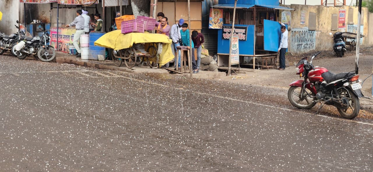 Betul Daily News/मुलताई। नगर सहित आसपास के क्षेत्र में दोपहर अचानक मौसम में बदलाव हुआ और लगभग डेढ़ बजे झमाझम बारिश प्रारंभ हो गई जिसके बाद मटर के आकार के ओले गिरे। इसके साथ ही गोपलतलाई, नरखेड़ तथा प्रभात पट्टन में भी बारिश के साथ ओलावृष्टि होना बताया जा रहा है। सुबह से ही गर्मी एवं उमस के बाद दोपहर अचानक मौसम में बदलाव हुआ इस दौरान बादलों की गरज के साथ बारिश भी होती रही। बारिश से मौसम में नमी घुल गई तथा उमस एवं गर्मी से लोगों को राहत मिली बारिश के दौरान बसस्टेंड पर हो रही रामनवमी की तैयारियां प्रभावित हुई तथा दुर्गा मंदिर से चारों तरफ लगाए गए भगवा कपड़े गीले होकर नीचे गिर गए। कपड़ों के बिजली तारों से टकराने से तेज आवाज के साथ लगभग 10 मिनट तक बिजली गुल हो गई जिसके बाद बहाल कर दी गई। रामनवमी उत्सव समिति के द्वारा नवरात्र के पूर्व से ही बसस्टेंड एवं मुख्यमार्ग पर साज सजावट की जा रही थी। दोपहर अचानक बारिश ने पूरी तैयारियों पर पानी फेर दिया।