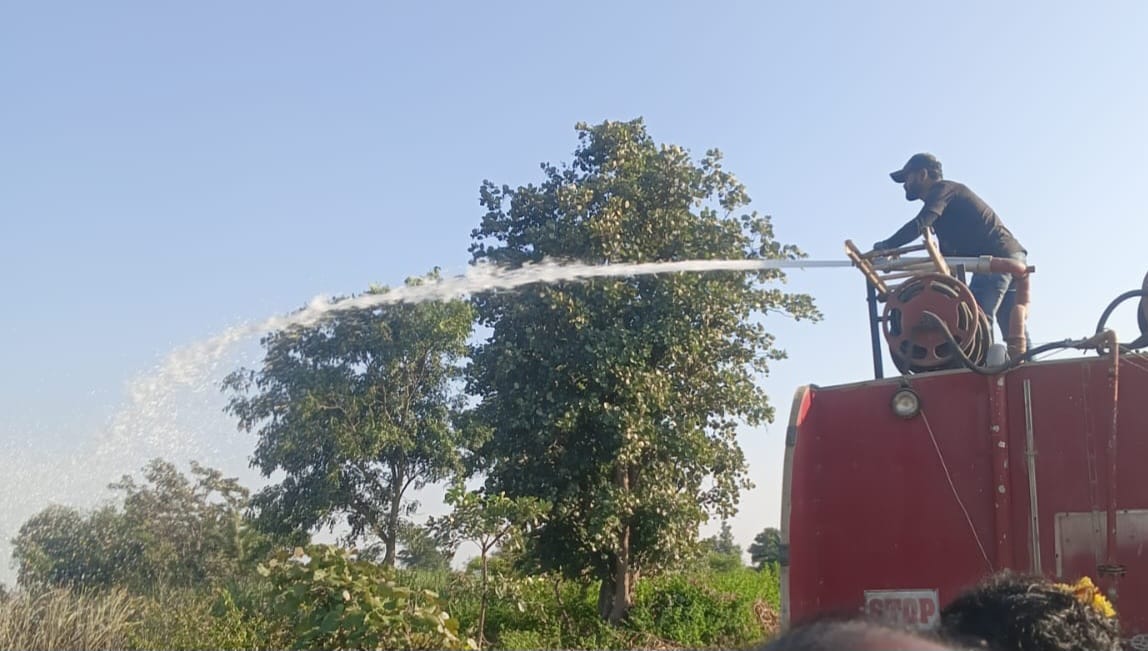 Betul Daily News/मुलताई। गुरुवार दोपहर लगभग 2:45 बजे ग्राम बिसखान में किसान किशन पवार के खेत में लगी गन्ना बाड़ी में अचानक आग लग गई। अज्ञात कारणों से लगी आग ने देखते ही देखते खेत के बड़े हिस्से को अपनी चपेट में ले लिया।सूचना मिलते ही फायर ब्रिगेड की टीम मौके पर पहुंची और फायर कर्मचारी धनराज पवार एवं भूपेंद्र राठौड़ ने तत्परता दिखाते हुए आग पर काबू पाया। ग्रामीणों की मदद से आग को फैलने से रोक लिया गया, जिससे बड़ी क्षति होने से बच गई। ग्रामीणों ने प्रशासन से खेत में लगी आग के कारणों की जांच की मांग की है।