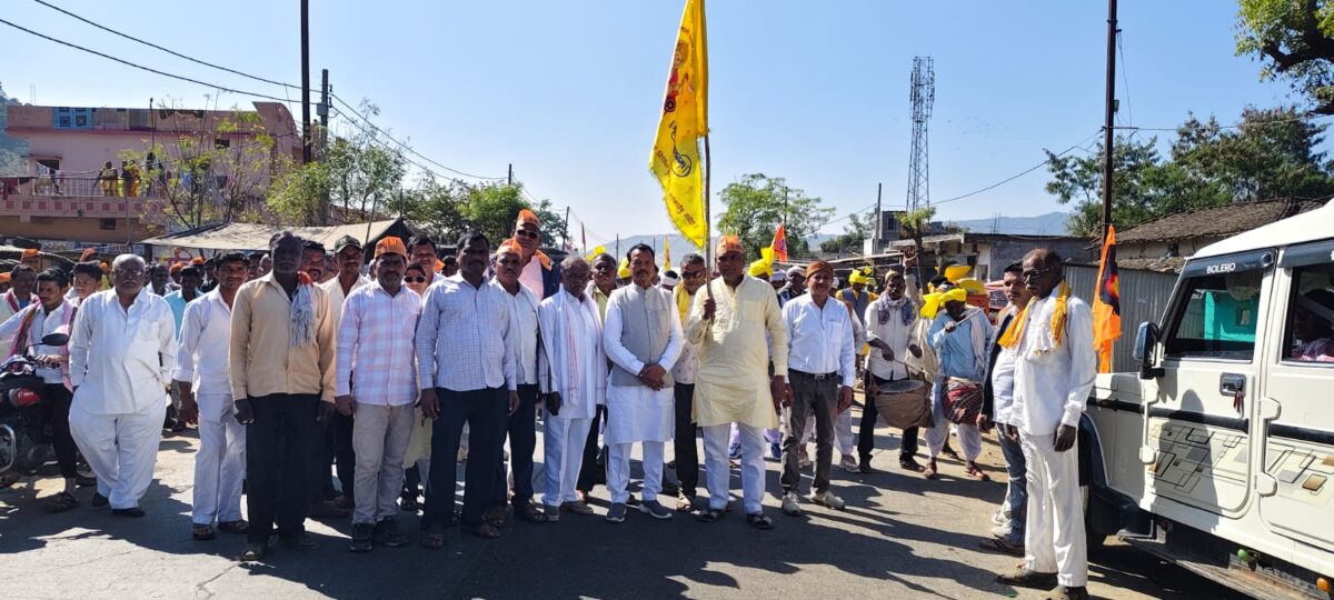 आस्था का केंद्र बना कोथलकुण्ड से बहिरम बाबा के लिए निकली पद यात्रा में अमन शांति के लिए 15 किलो मीटर पैदल चले कांग्रेस के पूर्व विधायक धरमुसिंग सिरसाम प्रतिवर्ष संकष्टी गणेश चतुर्थी के शुभ अवसर पर सुबह 8 बजे कोथलकुण्ड से भक्तों की टोली पदयात्रा करते हुए महाराष्ट्र सीमावर्ती बहिरम बाबा के मंदिर दर्शन करने निकली क्षेत्रवासियों के अमन चैन और खुशहाली की मंगल कामना के लिए पूर्व विधायक धरमुसिंग सिरसाम एवं ब्लाक किसान कांग्रेस अध्यक्ष पिंकी तिवारी के नेत्रत्व में डीजे की धुन पर नाचते हुए भक्तों की विशाल टोली बहिरम बाबा में विराजित गणपति जी के दर्शनार्थ पहुंचे।