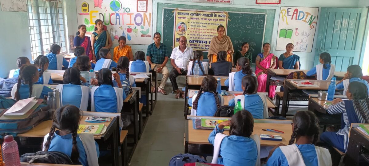 Betul Ki Khabar/मुलताई:- महिला एवं बाल विकास विभाग द्वारा पीएम श्री कन्या शासकीय उच्चतर माध्यमिक विद्यालय में गुरुवार को विश्व स्तनपान सप्ताह के समापन कार्यक्रम का आयोजन किया गया। यह सप्ताह 1 अगस्त से 7 अगस्त 2025 तक मुलताई परियोजना अंतर्गत 171 आंगनवाड़ी केंद्रों पर मनाया गया। कार्यक्रम का उद्देश्य नवजात शिशुओं को जन्म के पहले छह माह तक केवल स्तनपान कराकर उन्हें रोगमुक्त एवं कुपोषण से दूर रखना था। इस दौरान विभिन्न रैलियों, कार्यशालाओं और जनजागरूकता कार्यक्रमों के माध्यम से स्तनपान के लाभों पर विशेष जानकारी दी गई। समापन कार्यक्रम में महिला एवं बाल विकास विभाग प्रभारी गीता मालवीय ने बालिकाओं को स्तनपान के महत्व पर विस्तृत जानकारी दी। पर्यवेक्षक तुलसी पंवार ने “मां का दूध अमृत समान होता है” विषय पर प्रेरक उद्बोधन दिया।