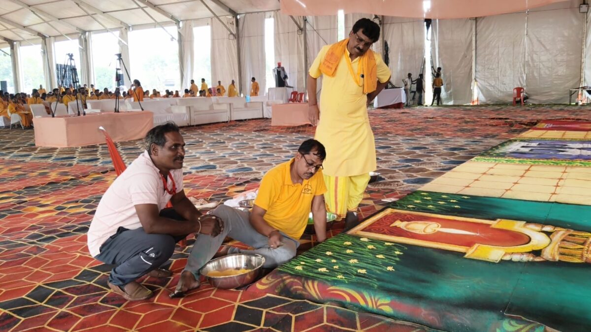 Betul Ki Khabar/मुलताई। नगर के कलाकार नारायण देशमुख हर महोत्सव में अपनी कलाकारी से सहयोग देते हुए लोगों के ध्यानाकर्षण का केंद्र बनते हैं। वर्तमान में उन्होंने प्रांतीय युवा चिंतन शिविर भोपाल में 40 फुट लंबी और 20 फुट चौड़ी रंगोली मंच के सामने उकेरी गई जो सभी के आकर्षण का केंद्र रही। इस प्रांतीय युवा चिंतन का शुभारंभ सोमवार को देवसंस्कृति विश्व विद्यालय शांतिकुंज हरिद्वार के कुलाधिपति डॉ चिन्मय पंड्या जी की मुख्य उपस्थिति हुआ। इस अवसर पर एवं मध्य प्रदेश शासन के मुख्यमंत्री मोहन यादव,सांसद डी डी उईके, मध्यप्रदेश जन अभियान परिषद के उपाध्यक्ष, राज्य मंत्री दर्ज प्राप्त मोहन नगर उपस्थित थे। आयोजन में मध्यप्रदेश के 50 जिलों को युवा भाई बहनों ने इस कार्यक्रम में भाग लिया। इस कार्यक्रम के माध्यम से देश के प्रति युवाओं की भागीदारी, समाज के प्रति चिंतन और व्यवहार,जैसे विषयों पर युवाओं को मागदर्शन दिया जा रहा है। जहां पर मंच डेकोरेशन एवं रंगोली आज सज्जा हेतु मुलताई के समयदानी कार्यकर्ता एवं तहसील समन्वयक नारायण देशमुख, प्रवीण देशमुख, राजेंद्र अमृते आदि समयदान कर अपनी सेवाएं प्रदान कर रहे हैं। नारायण देशमुख ने बताया कि वे वर्षों से गायत्री परिवार के आयोजनों सहित विभिन्न महोत्सवों में अपनी कला के माध्यम से सहयोग देते हैं ताकि पवित्र नगरी का नाम दूर दूर तक रोशन हो सके।