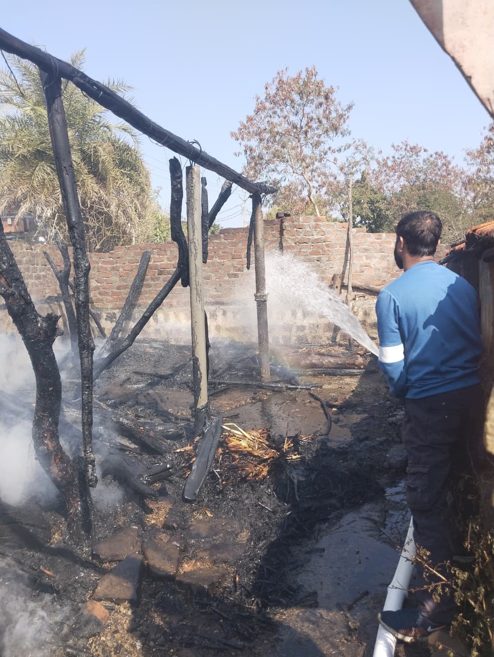 Betul Ki Khabar/मुलताई। ग्राम खतेड़ा कला में लखन देशमुख के मकान के पीछे बने जानवरों के कोठे में अचानक भीषण आग लग गई। आग इतनी तेज थी कि कुछ ही देर में पूरे कोठे को अपनी चपेट में ले लिया। कोठे में बंधी एक गाय और एक बछड़ा आग में झुलस गए, जबकि वहां रखा कृषि उपयोग का सामान और उपकरण पूरी तरह जलकर खाक हो गए। घटना की जानकारी मिलते ही अफरा-तफरी मच गई तथा ग्रामीणों ने तुरंत आग बुझाने का प्रयास किया, लेकिन आग तेजी से फैलने के कारण सफलता नहीं मिल सकी। सूचना पर फायर ब्रिगेड मौके पर पहुंची। फायर कर्मचारी राकेश बारंगे और भूपेंद्र राठौर ने तत्परता दिखाते हुए कड़ी मशक्कत के बाद आग पर काबू पाया। फायर ब्रिगेड की समय पर कार्रवाई से बड़ा हादसा टल गया। यदि आग पर समय रहते काबू नहीं पाया जाता तो पास में स्थित मकान भी आग की चपेट में आ सकता था, जिससे भारी नुकसान होने की आशंका थी। घटना में पशुओं को गंभीर नुकसान हुआ है। आग लगने के कारणों का फिलहाल पता नहीं चल पाया है।