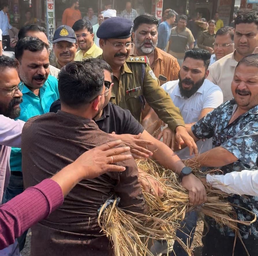 Betul Ki Khabar/मुलताई। नगर के बसस्टैंड पर शुक्रवार दोपहर प्रदेश सरकार के मंत्री कैलाश विजयवर्गीय के पुतले को लेकर पुलिस एवं कांग्रेसियों में जमकर खींचातानी हुई जिसमें कांग्रेसी पुतला दहन कर रहे थे लेकिन पुलिस ने हस्तक्षेप कर पुतला दहन नही होने दिया। इस दौरान कांग्रेसी कार्यकर्ताओं ने जमकर मुख्यमंत्री मोहन यादव के खिलाफ नारेबाजी करते हुए पुलिस को आगे करने का आरोप लगाया। मामला उस समय का है जब कांग्रेस ब्लाक अध्यक्ष अरूण यादव के नेतृत्व में बड़ी संख्या में कांग्रेसियों द्वारा भाजपा के मंत्रियों द्वारा की गई अमर्यादित टिप्पणी का विरोध करते हुए प्रदर्शन किया गया तथा इस दौरान मंत्री कैलाश विजयवर्गीय का पुतला दहन के लिए बसस्टेंड पर लाया गया लेकिन मौके पर मौजूद पुलिस द्वारा पुतला छीन लिया गया जिससे पुतला दहन नही हो सका। उन्होने बताया कि भारत अमेरिका ट्रेड डील देश की कृषि व्यवस्था पर सीधा हमला है तथा यह समझौता देश के सीमांत मध्यम किसानों, व्यापारियों को बाजार की असमान प्रतिस्पर्धा में धकेलने वाला है। यह डील देश की आर्थिक आत्मनिर्भरता को कमजोर कर बहुराष्ट्रीय कंपनियों को लाभ पहुंचाने का माध्यम बन रही है जिसका विरोध कांग्रेस के द्वारा किया जा रहा है। कांग्रेस के लोकेश यादव ने बताया कि प्रदेश सरकार के मंत्री कैलाश विजयवर्गीय के द्वारा नेता प्रतिपक्ष उमंग सिंघार पर अमर्यादित टिप्पणी को लेकर तथा अन्य दो मंत्रियों द्वारा भी अमर्यादित टिप्पणी के मामले में विरोध प्रदर्शन किया गया तथा राज्यपाल के नाम तहसीलदार को ज्ञापन सौंपा गया है।
