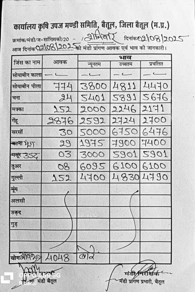Betul Mandi Bhav: देखे Betul कृषि उपज मंडी भाव 02 अगस्त