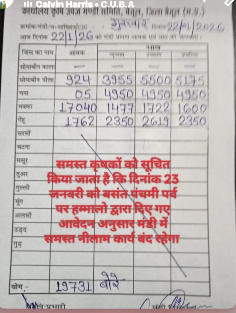 Betul Mandi Bhav: देखे Betul कृषि उपज मंडी भाव 22 जनवरी