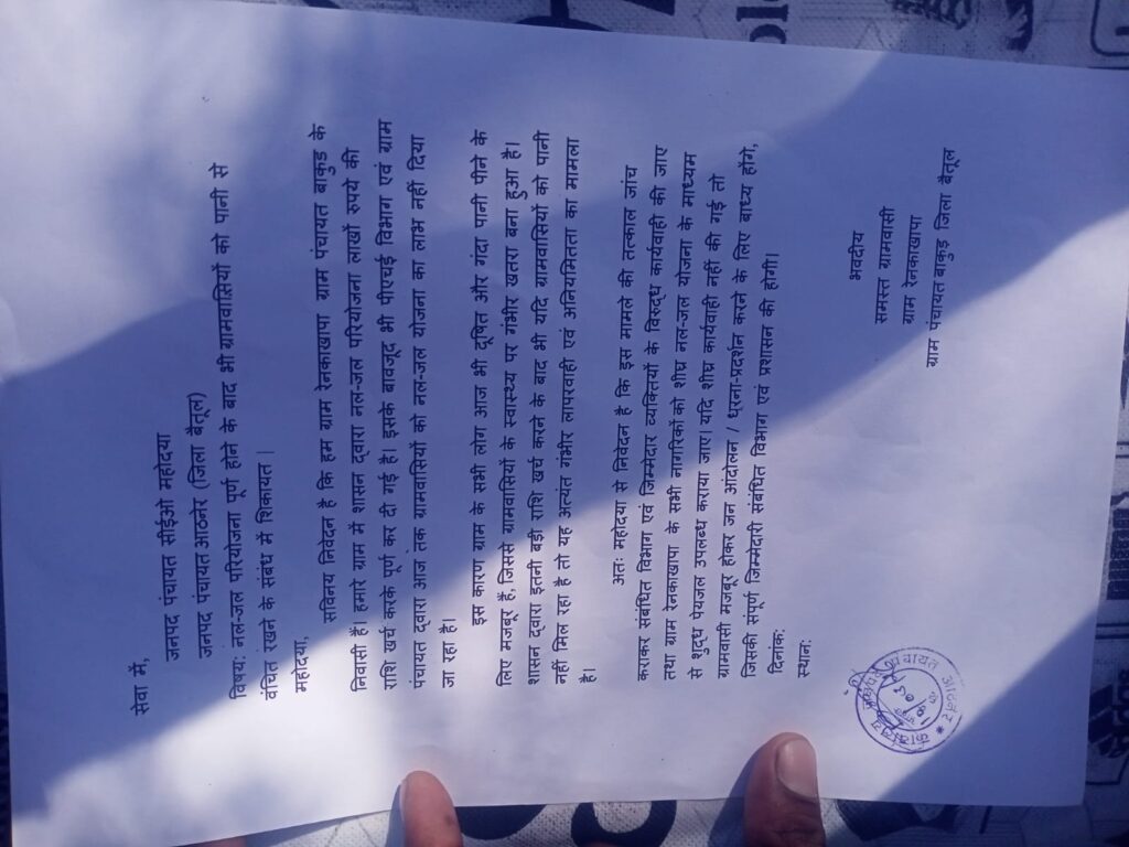 ग्रामीणों ने जनपद सीईओ और सरपंच को दिया आवेदन