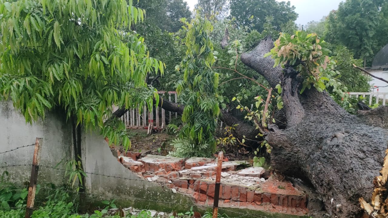 Betul Samachar/चिचोली:- क्षेत्र में लगातार हो रही झमाझम बारिश और तेज हवाओं के करण नगर के वार्ड क्रमांक 5 स्थित पीडब्ल्यूडी कार्यालय के पास सालो पुराना आम का पेड़ धराशाई हो पीडब्ल्यूडी कार्यालय परिसर में पेड़ गिरते ही वहां माहौल हो गया । घटना मंगलवार शाम 5:00 बजे की है पेड़ गिरते ही लोग इधर-उधर भागते नजर आए। पेड़ गिरने से करले की बाउंड्री वॉल एवं परिसर में रखे बैरिकेड क्षतिग्रस्त हो गए। वार्ड पार्षद रोहित आर्य ने बताया कि सालों पुराना आम का पेड़ अचानक धाराशाही हो गया जिससे कारण पीडब्ल्यूडी कार्यलय बाउंड्री वॉल, और परिसर में रखें बैरिकेट्स और बिजली के तार क्षतिग्रस्त हुए हैं गनीमत यह रही की यह पेड़ सड़क की ओर नहीं गिरा नहीं तो बड़ी को दुर्घटना हो सकती थी पेड़ गिरने से नगर की विद्युत सप्लाई कई घंटे तक बंद रहेगी l