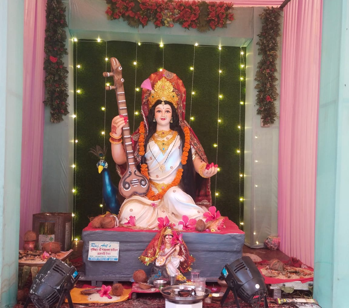 मां शारदा की भव्य प्रतिमा और सजे हुए पंडाल की सुंदरता पूरे वार्ड में आकर्षण का केंद्र बनी हुई है।