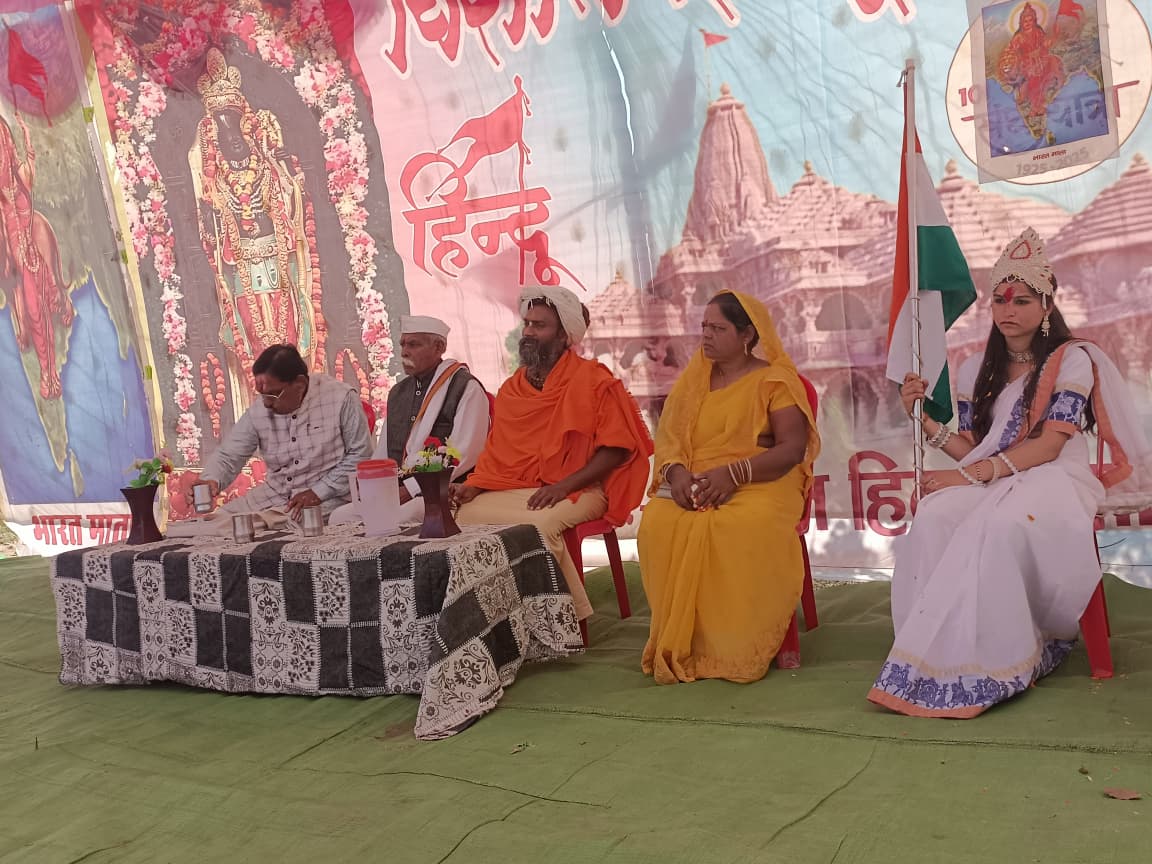 Betul Samachar/चिचोली:- विकासखंड के अंतर्गत ग्राम जोगली मे गुरुवार को हिंदू सम्मेलन का आयोजन किया गया इस दौरान गाँव मे कलश यात्रा के साथ साथ भारत माता की शोभायात्रा निकाली गई