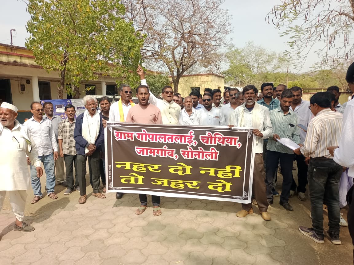 Betul Samachar/मुलताई। वर्धा बांध से निकलने वाली नहर के लाभ से वंचित चार गांवों के किसानों द्वारा मुलताई पहुंचकर नहर के लिए प्रदर्शन किया। इस दौरान किसानों ने नहर दो नहीं तो जहर दो के नारे लगाते हुए एसडीएम राजीव कहार को ज्ञापन सौंपा। ज्ञापन के माध्यम से किसानों ने एसडीएम से शीघ्र नहर से गोपल तलाई, चौथिया, सोनोली और जाम गांव को जोड़ने की मांग की। किसानों ने कहा कि उनके गांव वर्धा डेम से मात्र तीन किलोमीटर की दूरी पर स्थित हैं, इसके बावजूद उन्हें मुख्य नहर से नहीं जोड़ा गया। जबकि वर्धा डेम की नहर उनके गांवों से होकर आगे 30 से 40 किलोमीटर दूर अन्य गांवों तक पहुंचाई गई है। इससे क्षेत्र के किसानों में भारी असंतोष है।किसानों ने आरोप लगाया कि करोड़ों रुपये की लागत से निर्मित वर्धा सिंचाई परियोजना का लाभ अधिकारियों की लापरवाही और मनमानी के चलते बांध के आसपास के क्षेत्र के किसानों को नहीं मिल रहा है। लाभ से वंचित किसानों में रोष पनप रहा है जिससे भविष्य में और बड़ा प्रदर्शन किया जा सकता है।