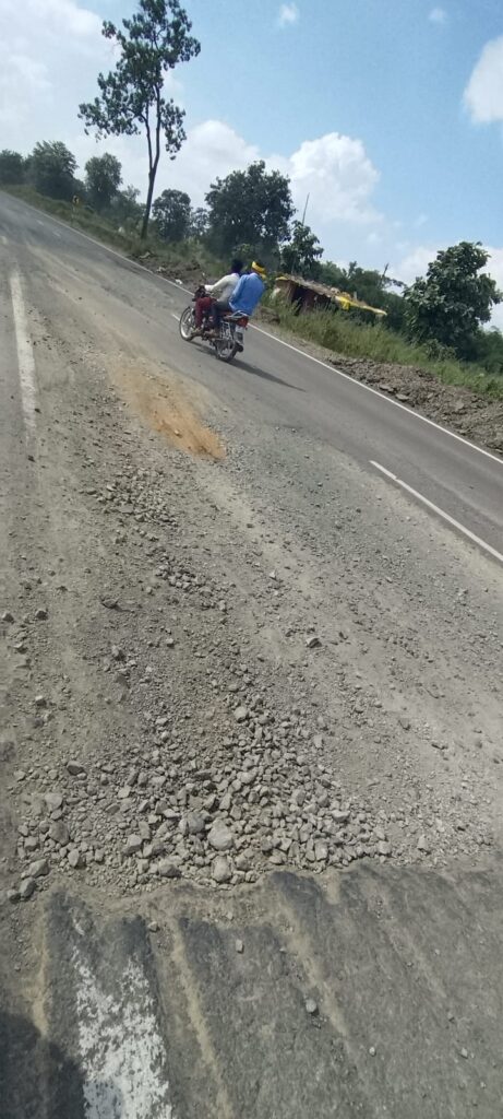 Betul Samachar News/चिचोली :- राष्ट्रीय राजमार्ग सड़क विकास प्राधिकरण के तहत बैतूल जिले के चिचोली सीताडोगरी से टेमागाँव के बीच सड़क मे गड्ढे या गड्ढा मे सड़क यह समझना मुश्किल है l इस सड़क में जगह जगह गड्ढे होने के कारण लगातार सड़क हादसों की संख्या बढ़ती जा रही है जिससे कई बेगुनाह अपनी जान गवा चुके हैं ।