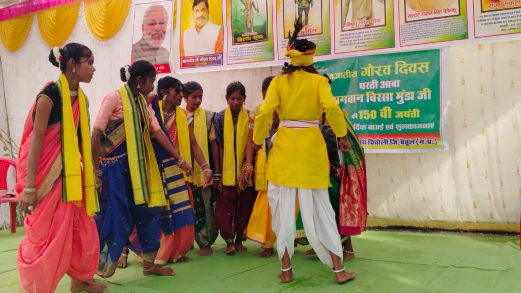 Betul Samachar News/चिचोली :- धरती आबा बिरसा मुंडा की 150 की जयंती को जनजाति गौरव दिवस के रूप में मनाया गया इस मौके पर नगर के शासकीय कन्या हायर सेकेंडरी स्कूल एवं उत्कृष्ट स्कूल में छात्र , छात्राओं ने सांस्कृतिक प्रस्तुति दी और आदिवासी संस्कृति पर विभिन्न कार्यक्रम प्रस्तुत किए इसी के साथ बाल मेले का आयोजन किया गया l