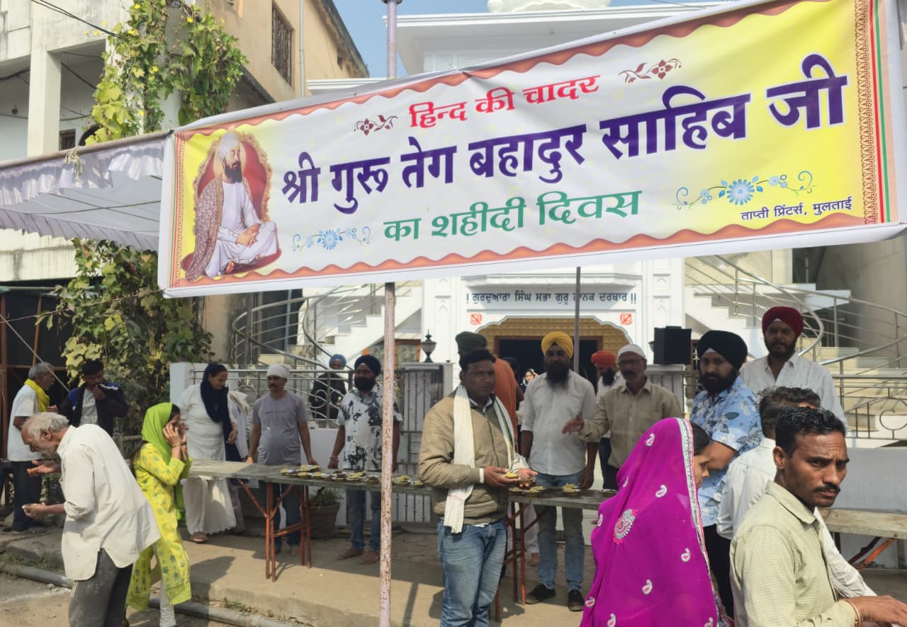 Betul Samachar News/मुलताई। सिख धर्म के नौवें गुरु हिन्द दी चादर श्री गुरु तेग बहादुर साहिब जी के शहीद दिवस पर मंगलवार को पवित्र नगरी के गुरुद्वारा साहिब में राहगीरों को चना हलुआ प्रसाद का वितरण किया गया। मंगलवार को सुबह 10:30 बजे से संगत ने सुखमणि साहिब का पाठ किया। पाठ उपरांत अरदास की गई। उसके उपरांत गुरुद्वारा साहिब के सामने मार्ग से आवागमन कर रहे राहगीरों को चना हलुआ प्रसाद का वितरण क़िया गया। गुरुसिंघ सभा के सेवादार सरदार जसबीर सिंघ ने बताया कि 1675 में औरंगज़ेब द्वारा कश्मीर के हिंदुओं पर जबरन इस्लाम थोपने की मुहिम चलाई जा रही थी। उस दौरान धर्म और मानव अधिकारों की रक्षा के लिए हिन्द दी चादर श्री गुरु तेगबहादुर साहिब जी स्वयं दिल्ली पहुँचे। गुरु साहिब को इस्लाम स्वीकार करने या मृत्यु इन दो विकल्पों में से चुनने को कहा गया। गुरु जी ने धर्म-त्याग से इंकार करते हुए सत्य और न्याय के लिए दृढ़ता से खड़े रहे। गुरुजी की अटलता तोड़ने हेतु उनके तीन साथी सिख भाई मतीदास जी, भाई सतीदास जी और भाई दयालाजी को क्रूर यातनाओं द्वारा शहीद किया गया। इसके बाद 11 नवंबर 1675 को चांदनी चौक, दिल्ली में गुरु साहिब जी ने शहादत स्वीकार की। आज उनका शहादत स्थल गुरुद्वारा श्री शीशगंज साहिब के रूप में प्रतिष्ठित है। उनका बलिदान धार्मिक स्वतंत्रता, मानव अधिकारों और सत्य की रक्षा का अमर प्रतीक है।गुरु तेगबहादुर जी के संघर्ष और बलिदान से हमे सदैव सत्य और न्याय के लिए खड़े रहने की प्रेरणा मिलती है।