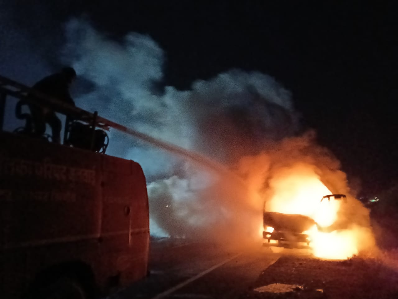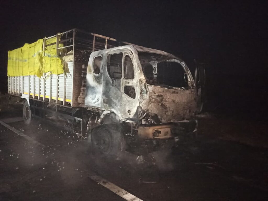 जानकारी के अनुसार, ट्रक क्रमांक एम एच 40 सीटी 6154 लहसुन भरकर जा रहा था। खंबारा घाट में पहुंचते ही ट्रक के केबिन से धुआं उठने लगा और अचानक आग भड़क गई। आग लगते ही चालक ने तुरंत ट्रक से छलांग लगा दी, जिससे उसकी जान बच गई। चालक को मामूली चोटें आई हैं और वह सुरक्षित है। पूरे मामले में आग कैसे लगी इसका पता नहीं चल पाया है।