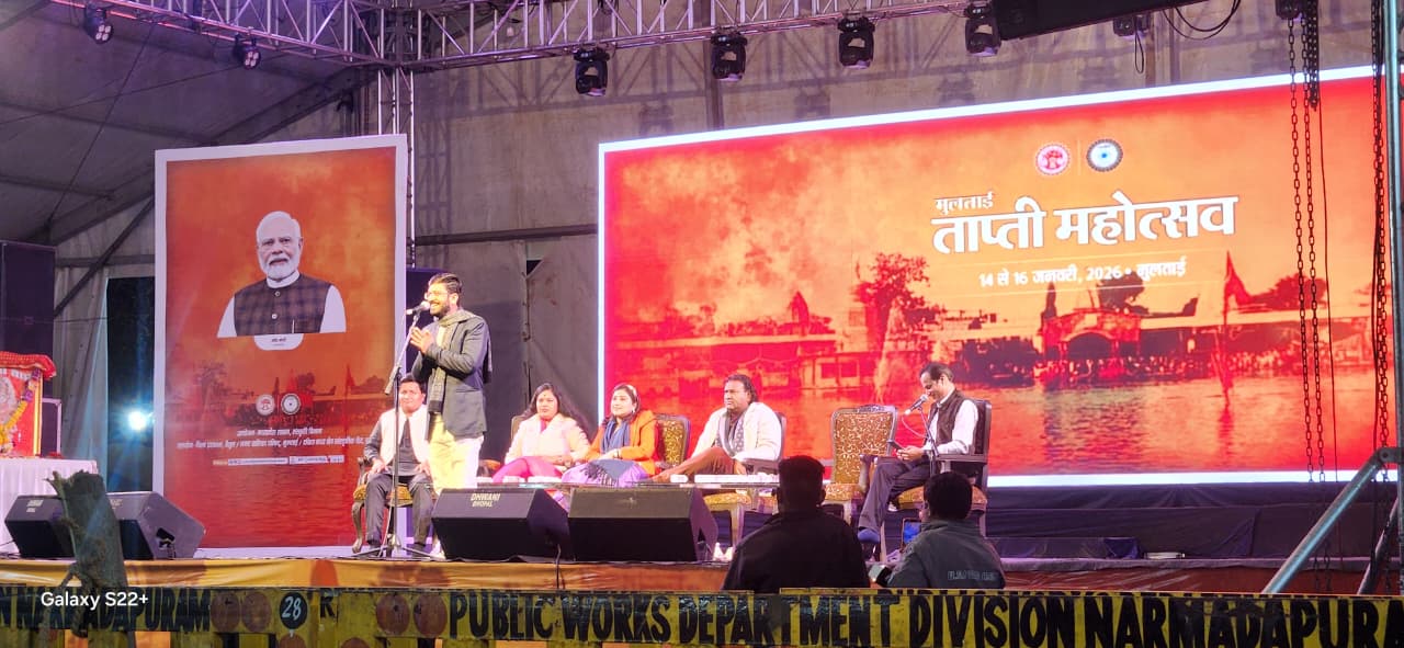 Betul Samachar News/मुलताई। ताप्ती महोत्सव के दूसरे दिन सुगम संगीत में भोपाल से पवित्र नगरी पहुंचे कलाकारों ने सुरों के जमकर रंगा बिखेरे जिससे पूरा महोत्सव संगीत लहरियों से ओत प्रोत हो गया। इसके बाद देख के प्रख्यात कवियों ने एक से बढ़कर एक प्रस्तुति दी जिससे देर रात तक कार्यक्रम में ठहाके गूंजते रहे एवं तालियां बजती रही। कार्यक्रम की शुरूआत धनगौरी गजा नृत्य से हुई जिसमें कलाकारों ने पारंपरिक नृत्य प्रस्तुत किए। इसके बाद पंथी नृत्य सुखदेव दास बंजारा दुर्ग एवं कलाकारों के द्वारा प्रस्तुत किया गया। कार्यक्रम में सुगम संगीत में कलाकारों ने शानदार फिल्मी नगमें प्रस्तुत किए तथा जनप्रतिनिधियों एवं दर्शकों की पसंद के भी चुनिंदा गीत सुनाए जिससे दर्शक झूम उठे। गायक एवं गायिकाओं ने सधे हुए स्वरों से उपस्थित लोगों का मन मोह लिया। कार्यक्रम का मुख्य आकर्षण कवि सम्मेलन में कवियों ने काव्य रचनाओं की उम्दा प्रस्तुति दी जिसमें कहीं हास्य रस, कहीं श्रंगार रस तो कहीं वीर रस की कविताओं का पाठ किया गया। कवि पंकज दिक्षित ने मंच संचालन किया जिनके संचालन में श्रद्धा शौर्य, दीपक शुक्ला, अमन अक्षर, भुवन मोहिनी तथा जानी वैरागी ने शानदार प्रस्तुति देकर उपस्थित श्रोताओं पर अपनी अमिट छाप छोड़ी। कवि जानी वैरागी ने अपने चित परिचित अंदाज में छोटी छोटी बातों से हास्य पैदा करने तथा सम सामयिक विषयों पर करारा व्यंग कर लोगों को गदगद कर दिया। देर रात तक चले कवि सम्मेलन में दर्शक बने रहे तथा कार्यक्रम का जमकर लुत्फ उठाया।