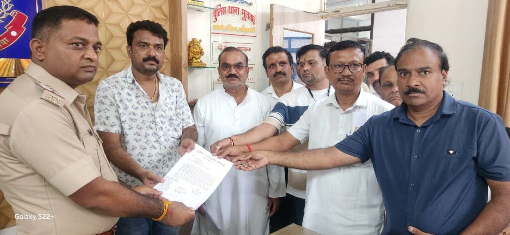 भयभीत व्यापारियों ने थाना प्रभारी को ज्ञापन सौंपकर की कार्यवाही की मांग
