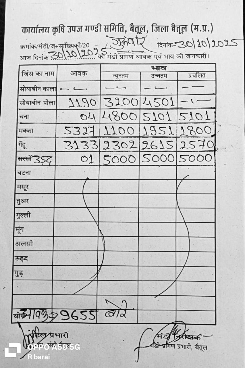 Mandi Bhav– देखे आज का betul मंडी भाव 30 अक्टूबर 2025