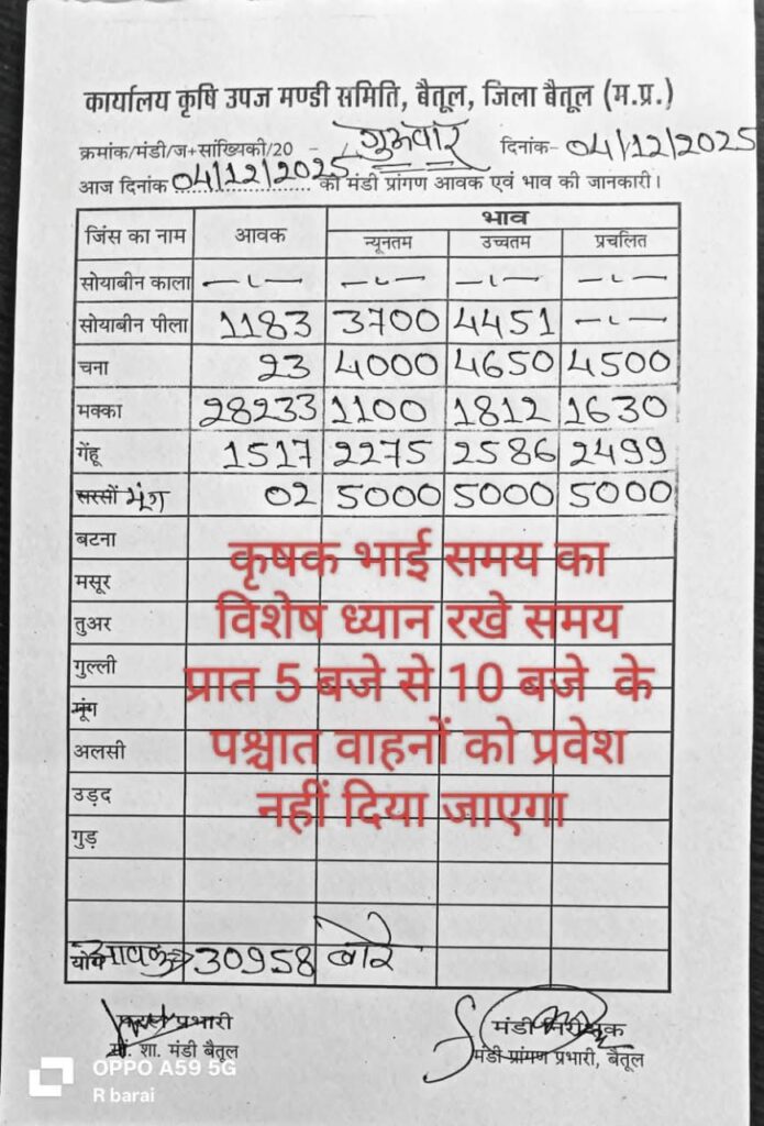 Mandi Bhav Today– देखे आज का betul मंडी भाव 04 दिसंबर 2025