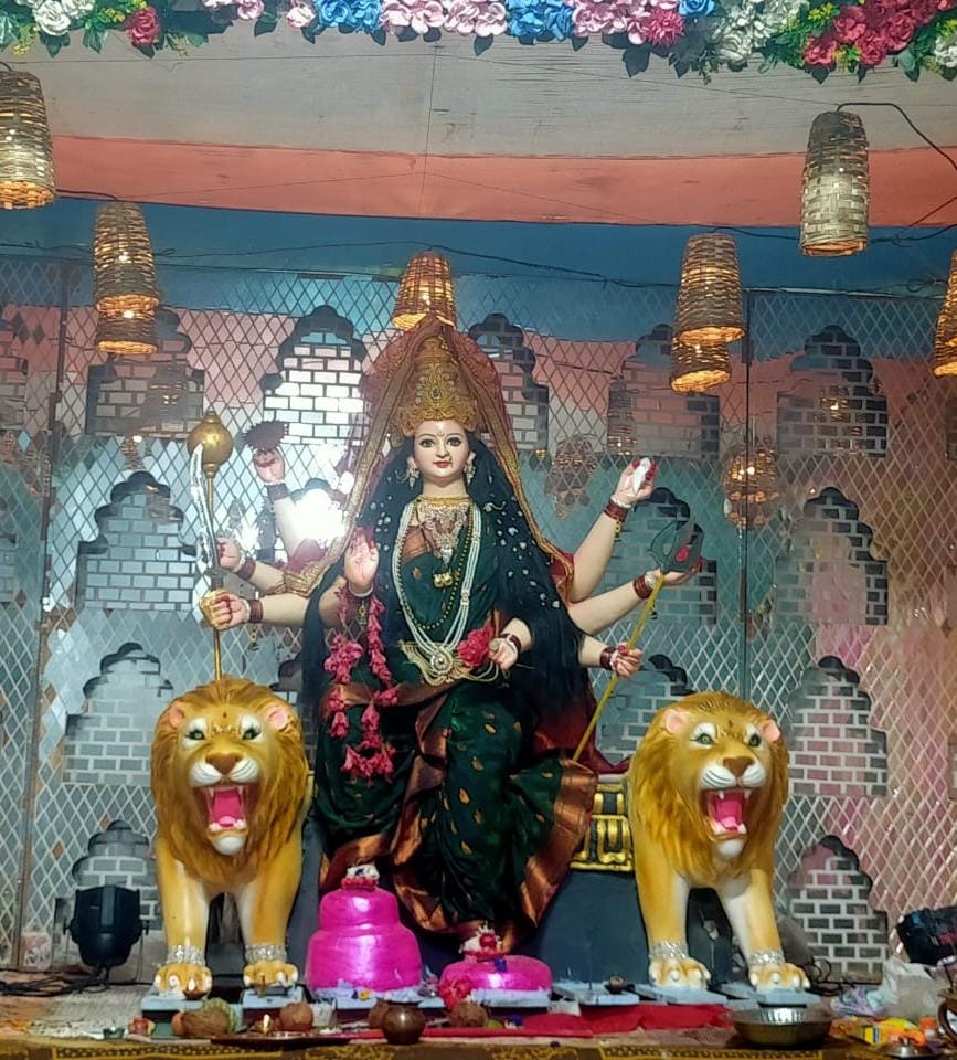 Navratri 2025(विपुल राठौर):- झल्लार में वर्षों से चलते आ रहे नवबालक दुर्गा मंडल, पटेल मोहल्ला बजरंग चौक झल्लार में प्रतिवर्षुसार इस वर्ष भी मां भवानी की स्थापना की गई। लगभग 6 फिट की प्रतिमा 2 शेरो के साथ आसान पर विराजित मां भवानी की मूर्ति भैंसदेही से लाकर स्थापित की गई। बता दे कि प्रतिदिन यहां सुबह– शाम पूजा अर्चना कर आरती की जाती है। तथा पंचमी पर महाआरती , अष्टमी पर हवन साथ ही महानवमी पर भंडारा और विजयदशमी पर धूम धाम से मूर्ति विसर्जन किया जाता है। इस कार्यक्रम का आयोजन सभी युवा साथी द्वारा किया जाता है। छोटे छोटे बच्चों द्वारा नृत्य की प्रस्तुति , खेल कूद तथा यहां अनेक कार्यकम किए जाते हैं, बड़े हर्षौल्लास के साथ आयोजन किया जाता है।