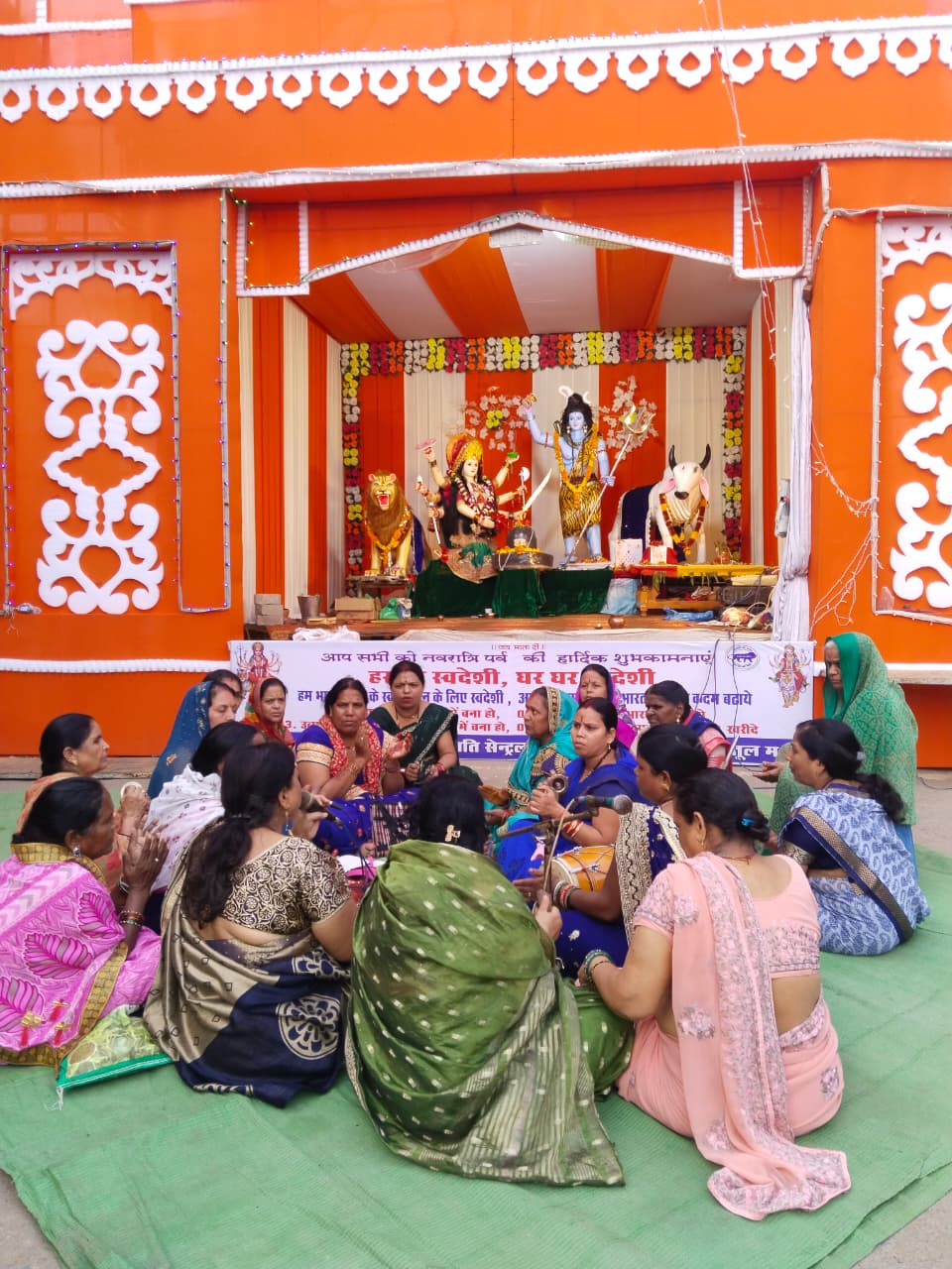 महिलाओं ने ढोल झांझ के साथ गाए मां दुर्गा के भजन दिनभर श्रद्धालु की रही भीड़