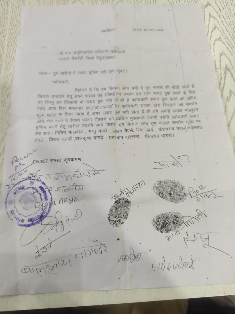 BETUL NEWS TODAY/भैंसदेही(मनीष राठौर) :- भैंसदेही क्षेत्र के किसानों ने अनुविभागीय अधिकारी राजस्व भैंसदेही को एक आवेदन दिया है, जिसमें …