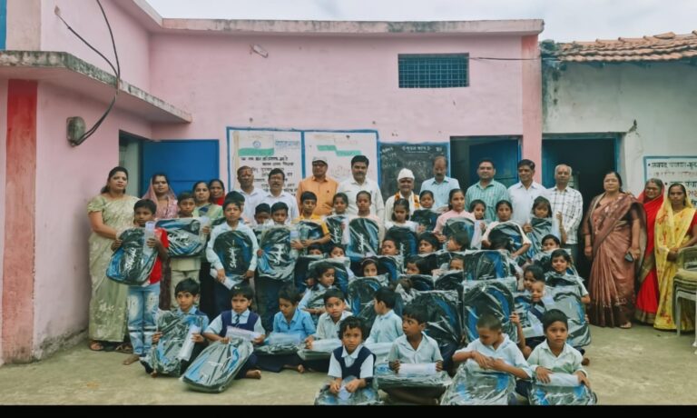 सेवानिवृत्ति पर शिक्षक ने बच्चों को भेंट किए स्कूली बैग